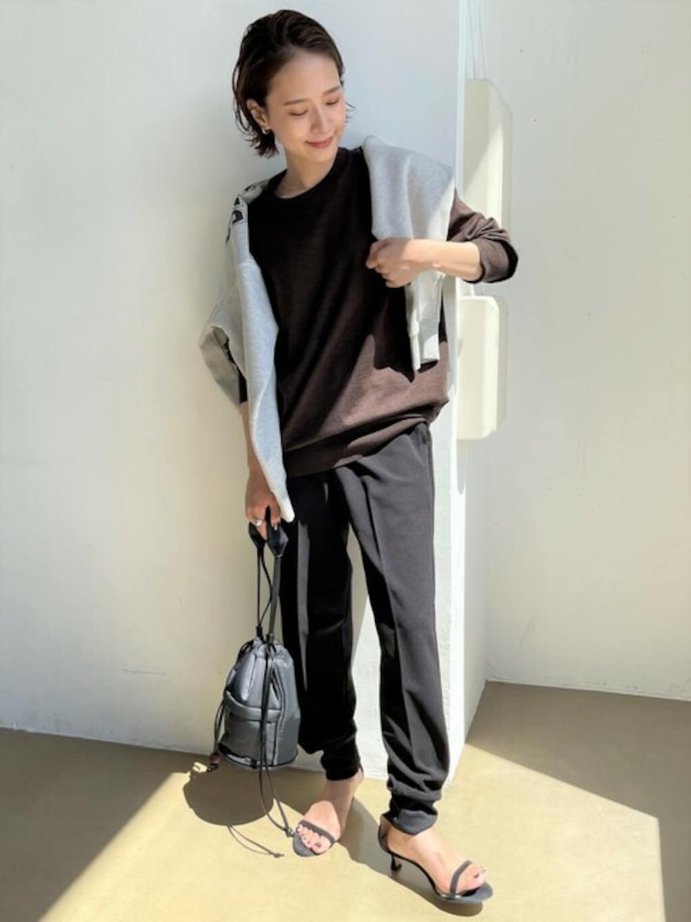 20代後半 / 身長:153cm / ウエーブ / 普段サイズ: 34~36 秋にぴったりのブラウンニット。 ニット×スウェットのMIXスタイルできれいめカジュアルに。 1枚で気映えするクルーネック。重宝しそうで秋のワードローブにプラスしたいです。 ※着用シューズのサイズについて:着用しているシューズはサンプルの為、モデルが普段着用しているサイズではございません。