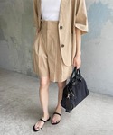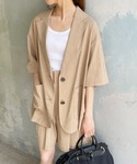 30代前半 / 身長:160cm /イエベ スプリング/ ウェーブ / 普段サイズ: 36~38 今っぽいハーフスリーブジャケットとのセットアップ。 メンズライクなアイテムですが、肌見せをバランスよく出すことで女性らしさをプラス。 ストレッチも入った柔らかな素材とニュアンス感あるベージュも着やすくていい。 小物はブラックで締めることでクラス感あるコーデにまとまる。 ※着用シューズのサイズについて:着用しているシューズはサンプルの為、モデルが普段着用しているサイズではございません。