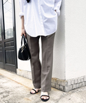 30代前半 / 身長:160cm /イエベ スプリング/ ウェーブ / 普段サイズ: 36~38 美脚ラインが保たれるセンタープレスパンツ。 ややフレアデザインが脚長に繋げてくれる。 人気のウールライクシーリーズが今年はシルエットをアップデートして再登場しました。 定番の人気シリーズなので1本持っていて間違いない。 きれいに着るならサンダルタイプのヒールで程よくディリ―なコーデにまとめるのがオススメ。 ※着用シューズのサイズについて:着用しているシューズはサンプルの為、モデルが普段着用しているサイズではございません。