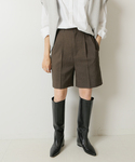 30代前半 / 身長:160cm /イエベ スプリング/ ウェーブ / 普段サイズ: 36~38 2タックでセンタープレスの入ったトラウザーシルエットのショートパンツ。 大人っぽくキレイめに履ける雰囲気に仕上げています。 ブラウンはツィード風に見える今年らしい雰囲気でロングブーツと好相性です。 ※着用シューズのサイズについて:着用しているシューズはサンプルの為、モデルが普段着用しているサイズではございません。