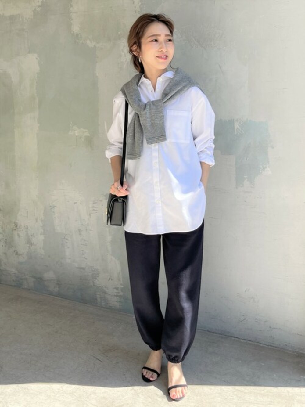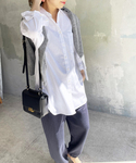 万能なホワイトなシャツは何枚も持っておきたい。 さらっとした着やすい布地感でちょうどいい緩さもいい。 アウトスタイルでも決まる着丈だからレイヤードの際も裾から出したアレンジもしやすい! きちんとしたシャツもリラックスなスエットパンツでミックスして楽しむのが気分。