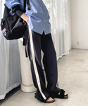 身長:160 普段のサイズ: 36 足:37 パーソナルカラー:イエベ春 骨格:ウェーブ Instagram→__m_89_m__ いつものコーデをアップデートしてくれるラインパンツ。 脚をスマートに見せてくれるサイドスリットデザインが施されています。 一見、スポーティーな印象ですが、きれいめシャツにもぴったりでコーデの外しアイテムとしても活躍します。