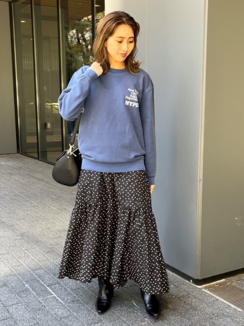 身長:160 普段のサイズ: 36 足:37 パーソナルカラー:イエベ春 骨格:ウェーブ Instagram→__m_89_m__ 春の新作コーデのご紹介。 Spickではお馴染みの人気ブランド【GOOD ROCK SPEED 】のスウェット。 バッグにもプリントがあり、後ろ姿も抜かりなく決まるトップス! 春を感じられるような優しいブルーも魅力的。 ボトムには少し甘さの感じられるドットスカートを合わせてMIXスタイルに仕上げました。