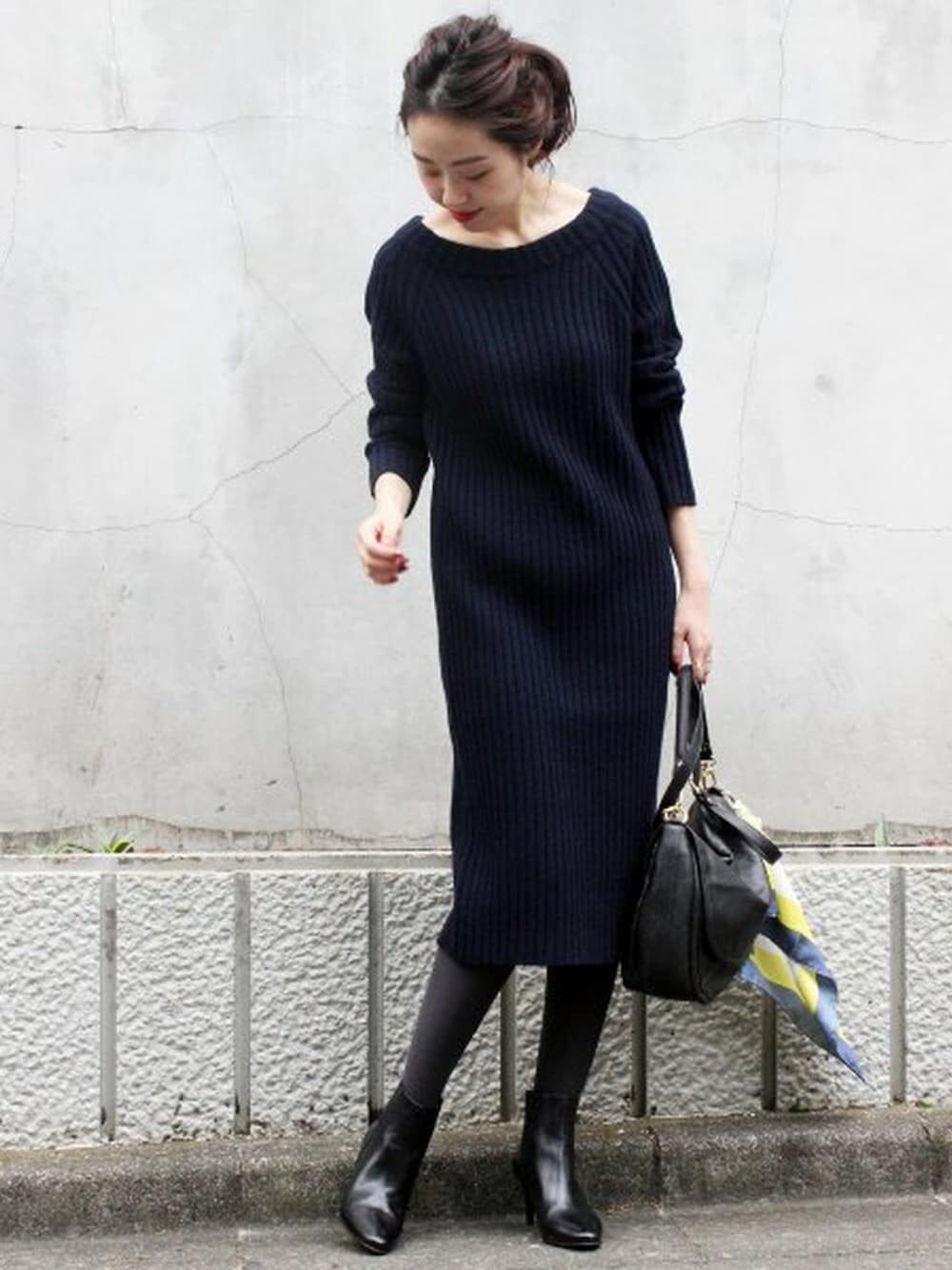 WEB限定ニットワンピース 一枚で着こなせるリブニットワンピース。 ネイビーは大人っぽく着こなせますよ! カラーをまとめてすっきりとした印象に◎