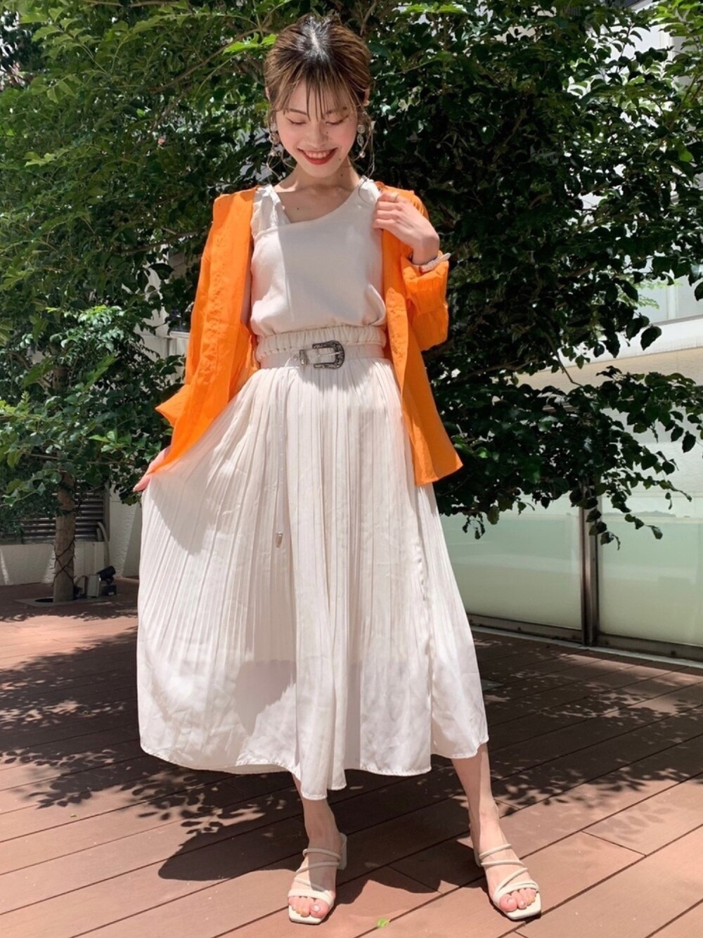 🧡 夏はビタミンカラー 🧡 アイボリーやベージュでまとめたコーデもいいけど、やっぱり差し色を使って遊びたい😍 シアーシャツならサラッと羽織れて簡単に コーデに取り入れれます✨