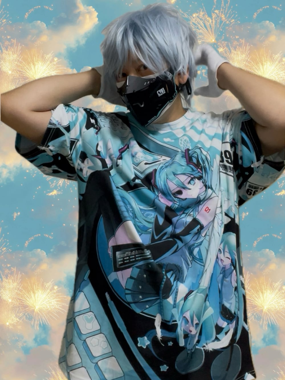 中央町戦術工芸さん 装甲マスクユニット 初音ミクモデル ¥9.900円 ACDCRAGさん 初音ミクx ACDCRAGコラボTシャツ ¥4.000円 各販売店 東京都渋谷区 原宿竹下通り ラフォーレ原宿 太めのメンズでも似合ってしまう!!