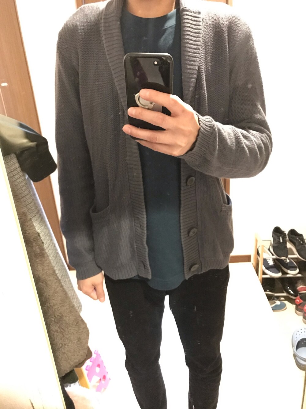 今日も暖かかったので、薄着で!! ブルーとグリーンの中間の色がキレイやけど、ちょっと合わせるの難しいかも💦 無難に黒パンツで!! アンクルパンツ手に入れたしそれでも良かったかも🤔💡