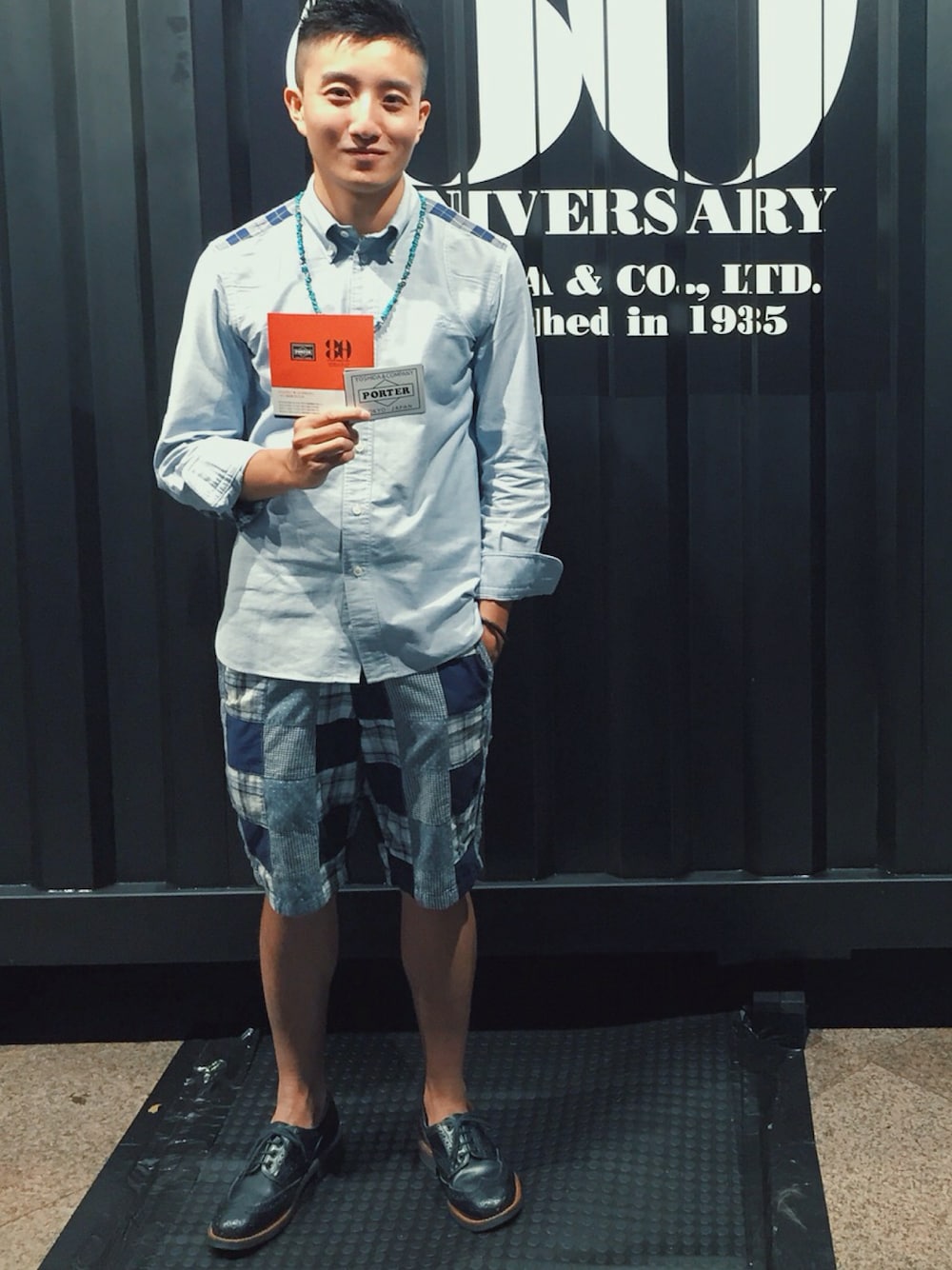 利用了Brooks Brother x Junya Watanabe MAN兩種特別開發的Oxford牛津布料搭配厚磅法蘭絨拼接,俐落又挺,搭配Beams湛藍色系拼接短褲,以及英國皇室御用百年製鞋老牌Trickers和Junya Watanabe合作的Wing-Tip,喜歡這樣率性俐落的搭配。