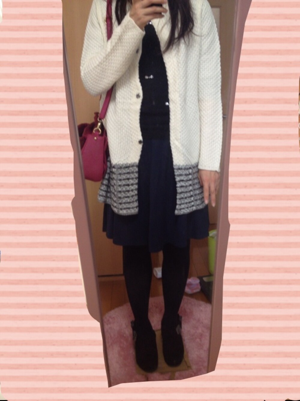 休日コーデです、 今日はいい天気なので若干暑いですが、白のカーディガンに一目惚れして着ちゃいました(^-^)/