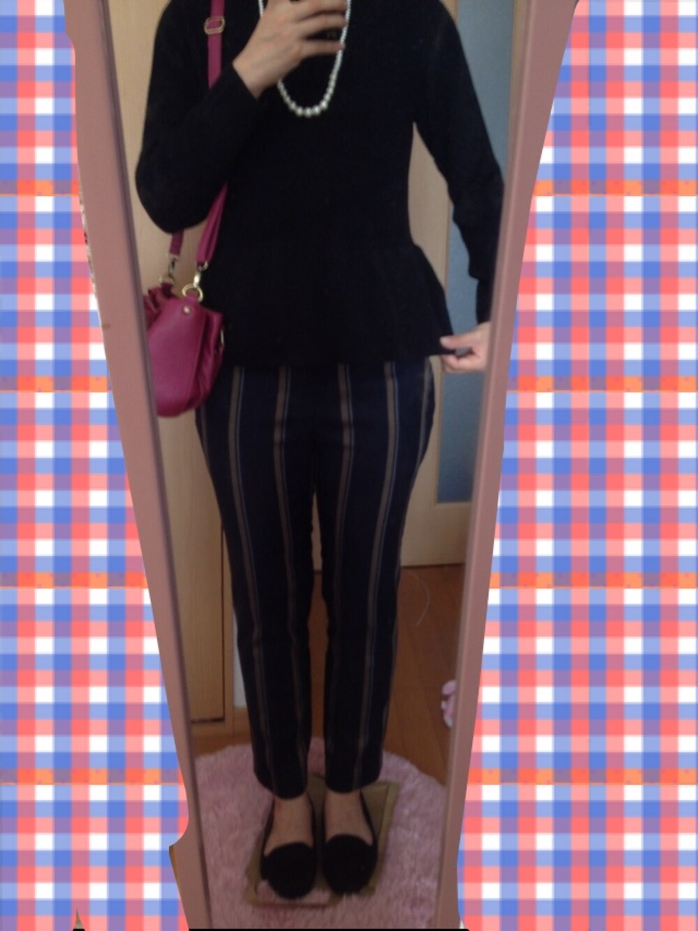 モノトーンで大人っぽくしてみました* ペプラムのニットとパールのネックレスで女性らしさも出したところがポイントです(^-^)/