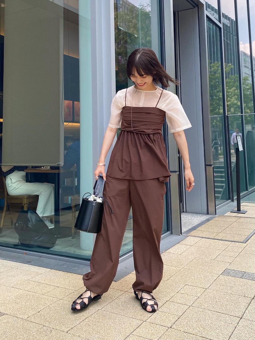kusuda yoshiko(mystic)のハンドバッグ「loti 巾着付きバケツBAG」を使ったコーディネート