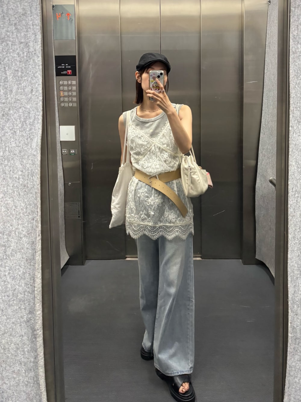 kusuda yoshiko(mystic)のシャツ/ブラウス「レースVキャミチュニック」を使ったコーディネート