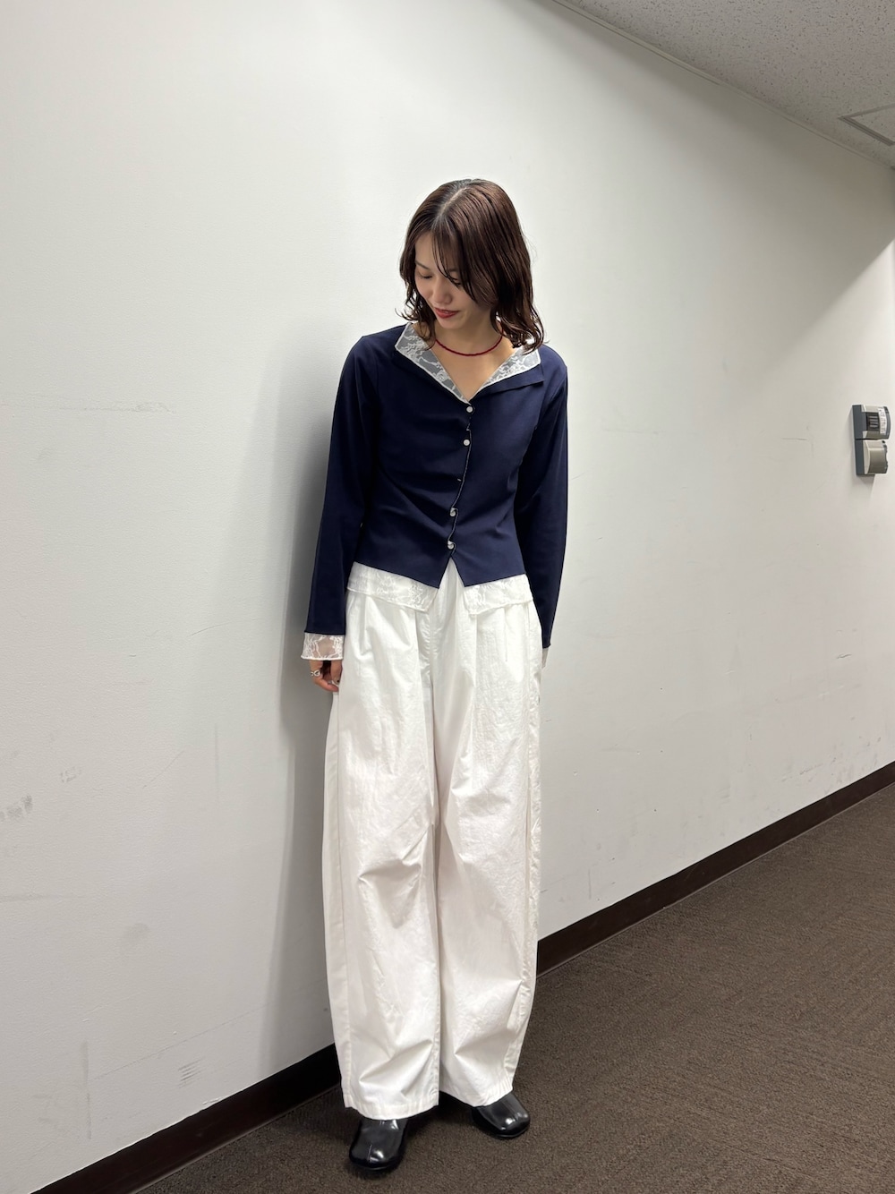 kusuda yoshiko(mystic)のTシャツ/カットソー「【新色ブラック/2種類のレイヤード素材】配色カットソー」を使ったコーディネート