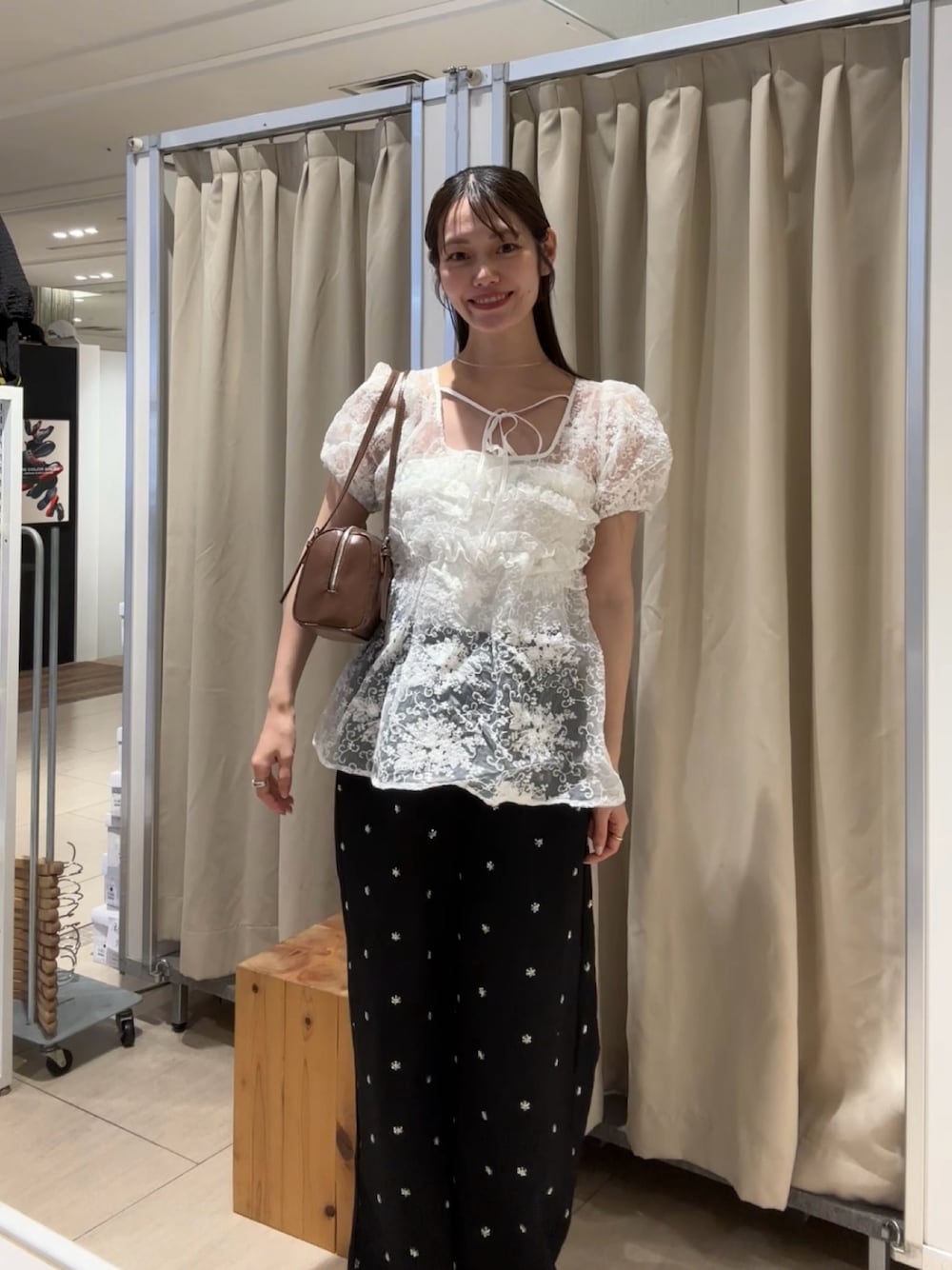 kusuda yoshiko(mystic)のスラックス「【3サイズ展開/SET UPスタイルにも◎】ビージーフラワースラックス」を使ったコーディネート