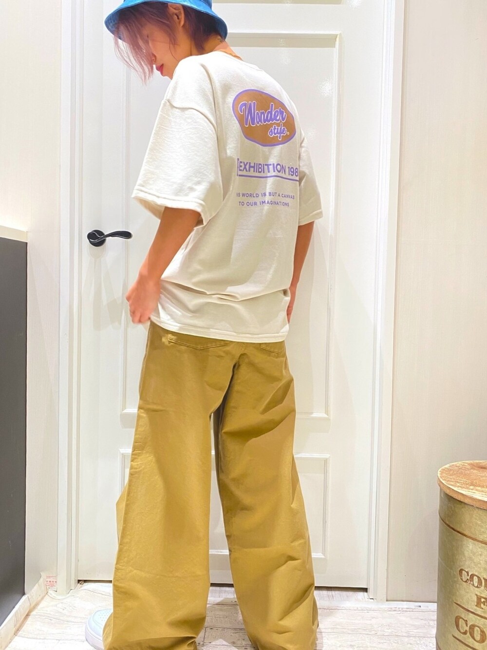 ウィメンズで着られるコーデ😊 バックプリントのtopsは少し緩めになってます! 今流行りのバックプリント! 柄スカートなら大人カジュアルに。 スキニーパンツでも◎😋 ショートパンツを合わせてちょっとワンピース風に着ても可愛いです♡