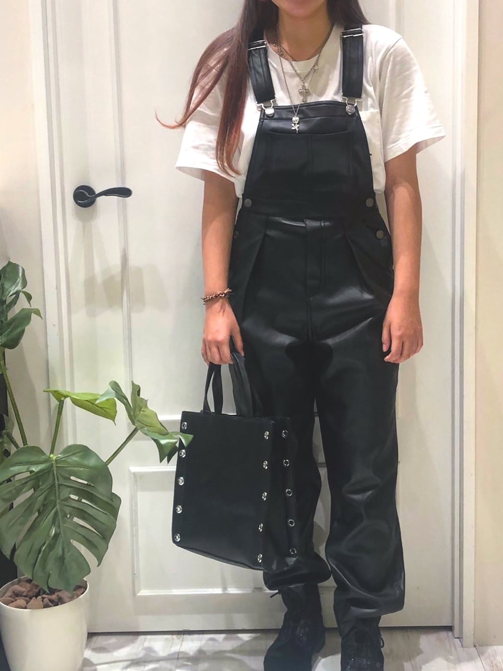 new arrival🤎 今年人気のレザーにサロペットが出ました😋 ちょっと秋を取り入れたコーデです👍 店頭では次々と秋の新作入荷してます☺️✨