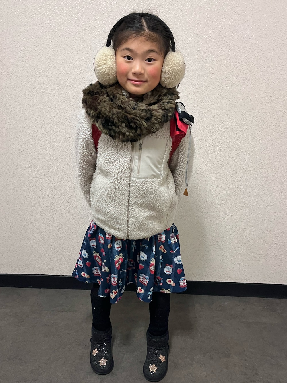 本日は、習い事ない日〜✨ だが、何故か宿題終わらず💔 何でだよー💢 学校に持って行ってはいけなちイヤーマフを身につけて下校しました。