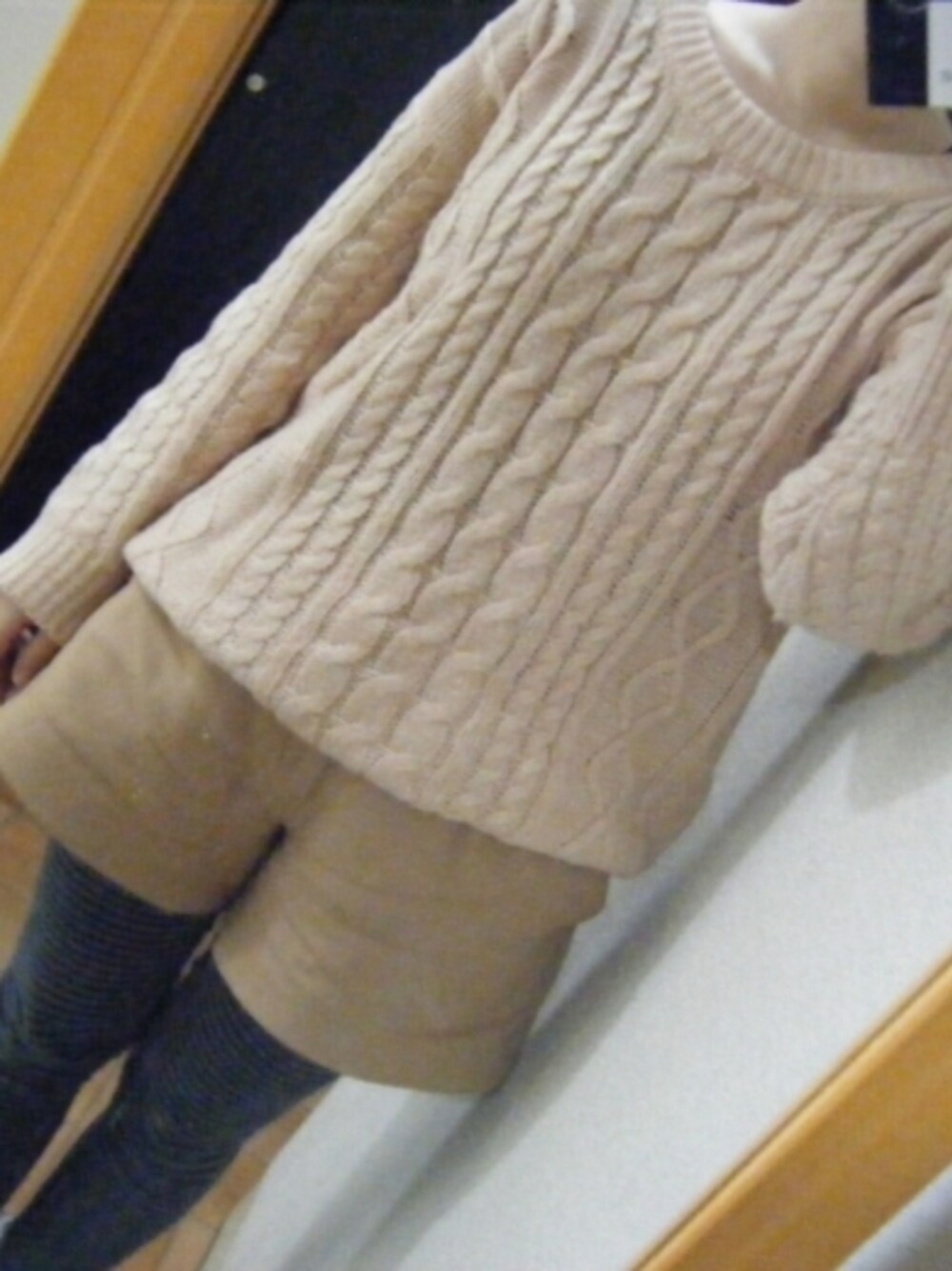 楽ちんコーデ salusのケーブルニット、楽ちんであったかなのでヘビロテ中(*^_^*)