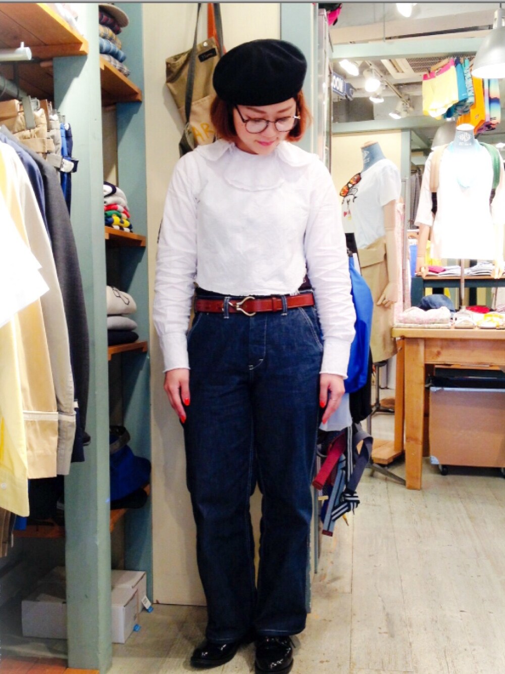 34のシャツ/ブラウス「○BEAMS BOY / 2重襟 Wバックボタン ショートブラウス」を使ったコーディネート