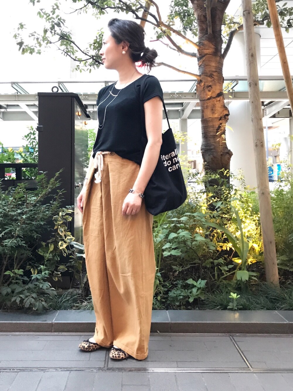 GAP新作のソフトスパンキャップスリーブTシャツ いつものコットンTシャツをハイゲージニットに変えると少し大人っぽい感じになるし秋へのシフトにも丁度いいと思います✨ サラッと心地よい肌触りで今の時期暑く感じることもなく快適に着られました😊 程良いゆとりととろみのある質感も大好きなポイント👍 モードローブのワイドパンツに合わせてGAPのレオパ柄バレエシューズで秋っぽいアクセントを😊 このシューズかえしがソフトで足にフィットするタイプのやつなので脱げないし楽ちん👍 この日は以前より仲良くしてもらってたyukayukaちゃんと初対面してきました♪ 想像していた通り気さくで笑顔が可愛いくて素敵なひと たくさんお話ししてお散歩して楽しいひと時でした😊 本当にありがとうね〜🙌 また絶対会いたい😆❤️
