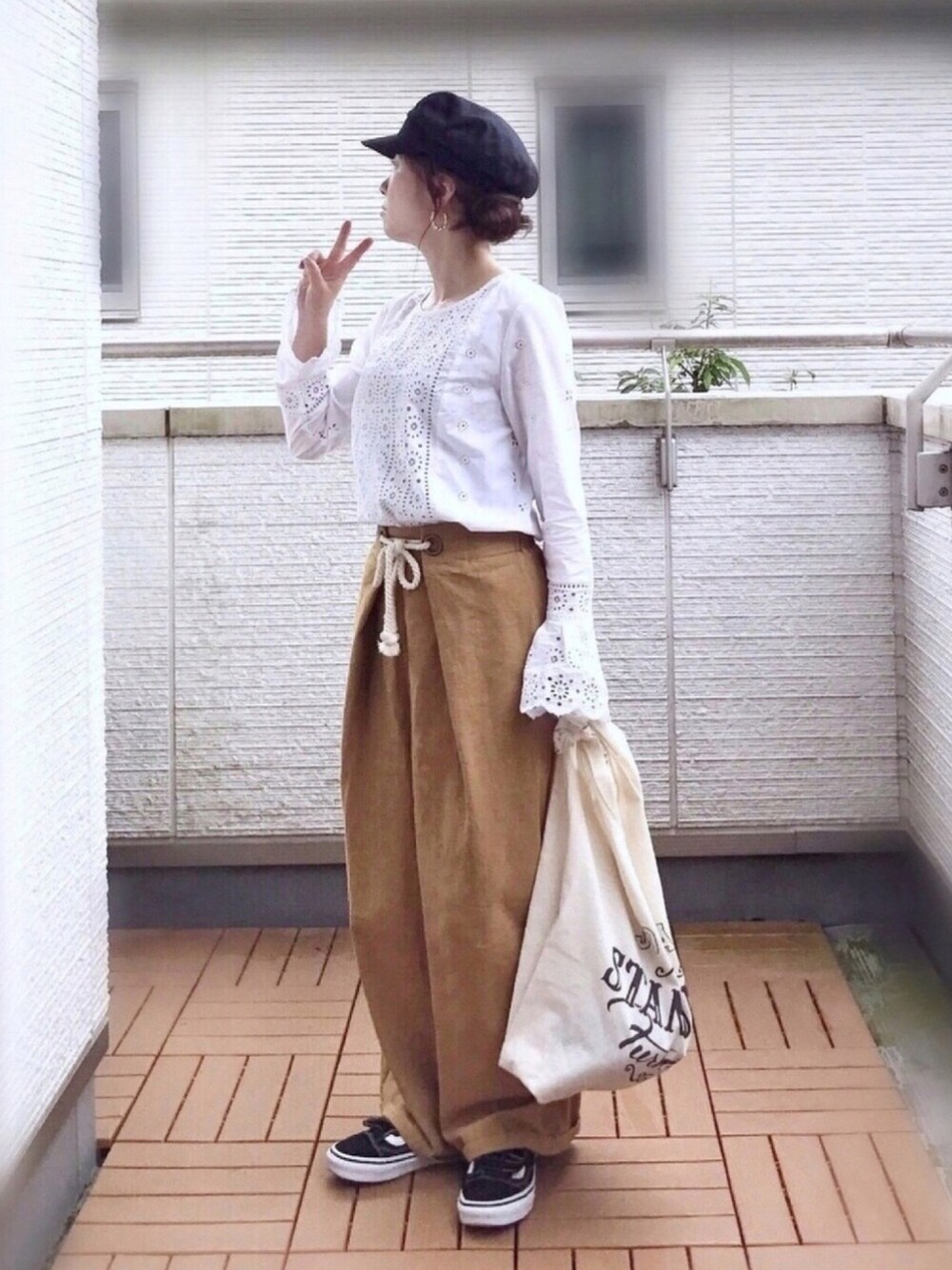 Kay-teeeのシャツ/ブラウス「Gap ベルスリーブ アイレットトップス」を使ったコーディネート