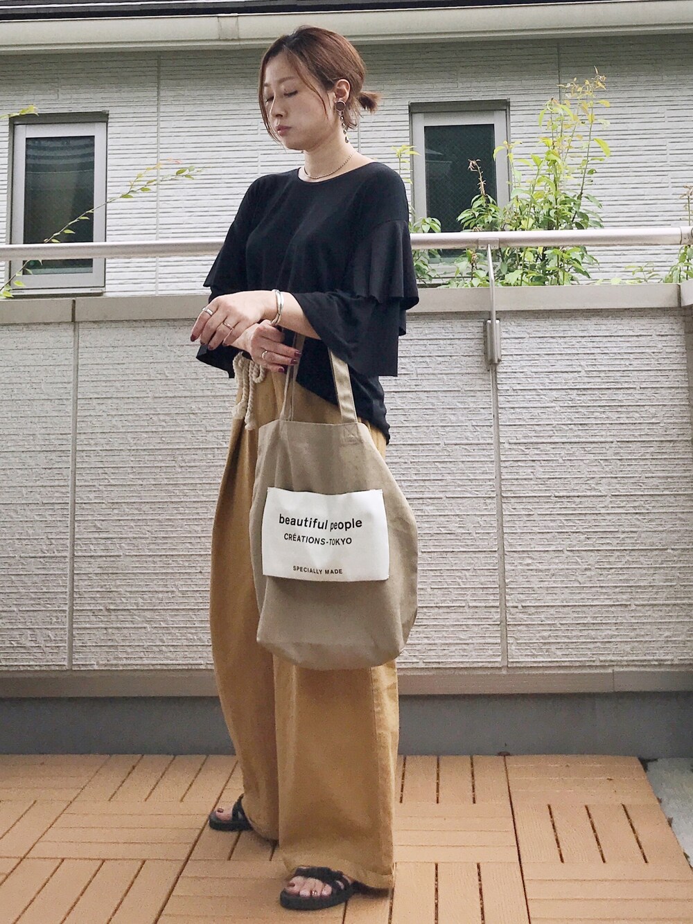 ブラック×マスタードでゆるっと☺️ GOLDYのイヤリングとチェーンネックレスのセット付けがお気に入りです💕