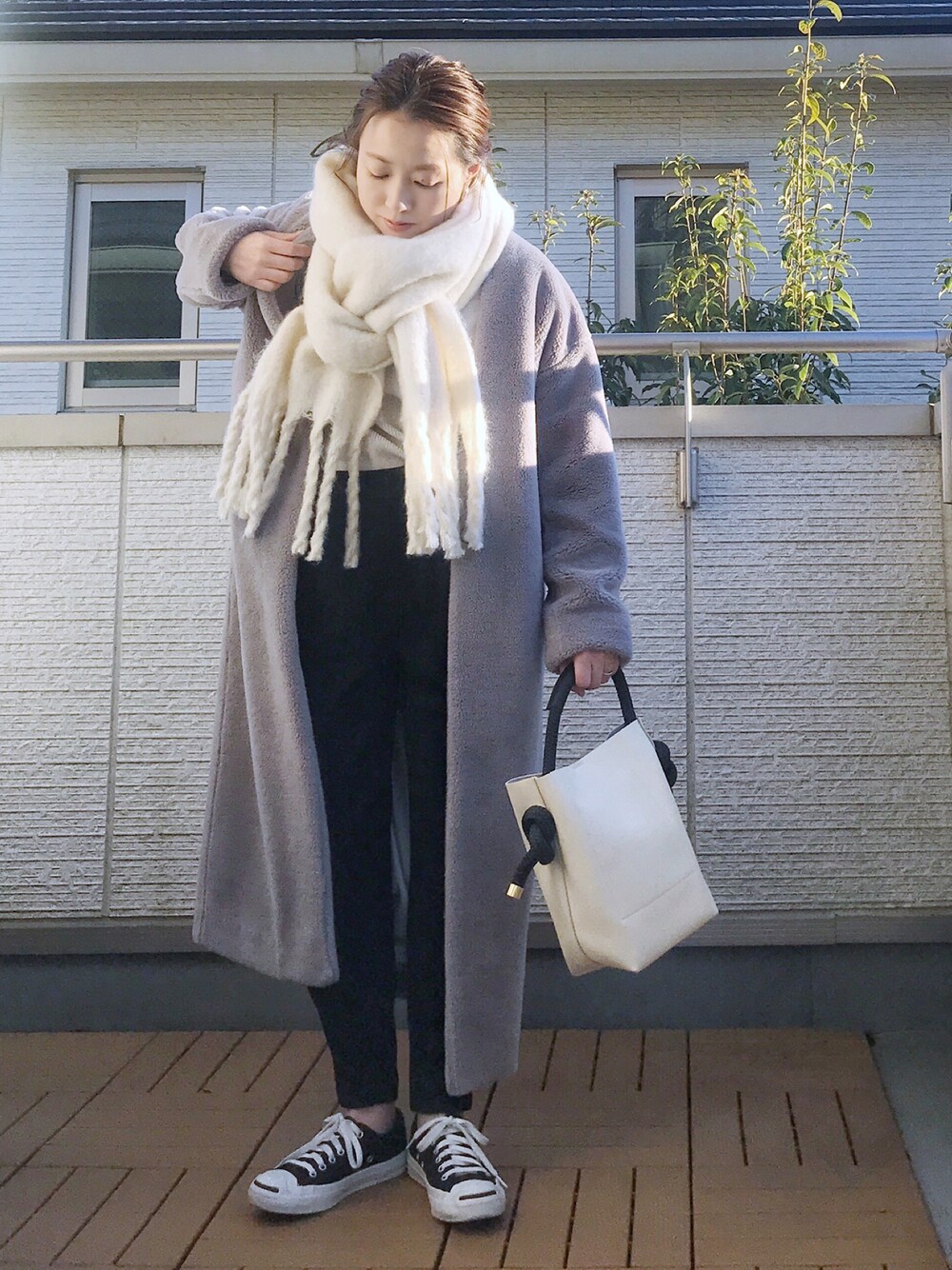 Kay-teeeのムートンコート「エコファーロングボアコート」を使ったコーディネート