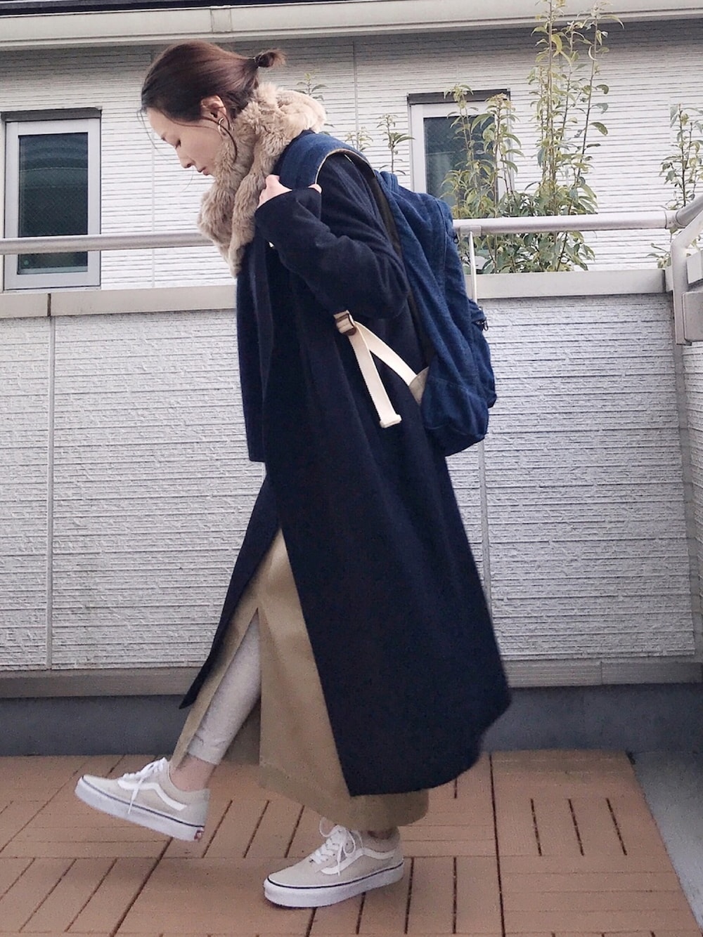 前回のコート羽織ったヴァージョン✨ こっちは中にレギンス履いてるのがよくわかる😅
