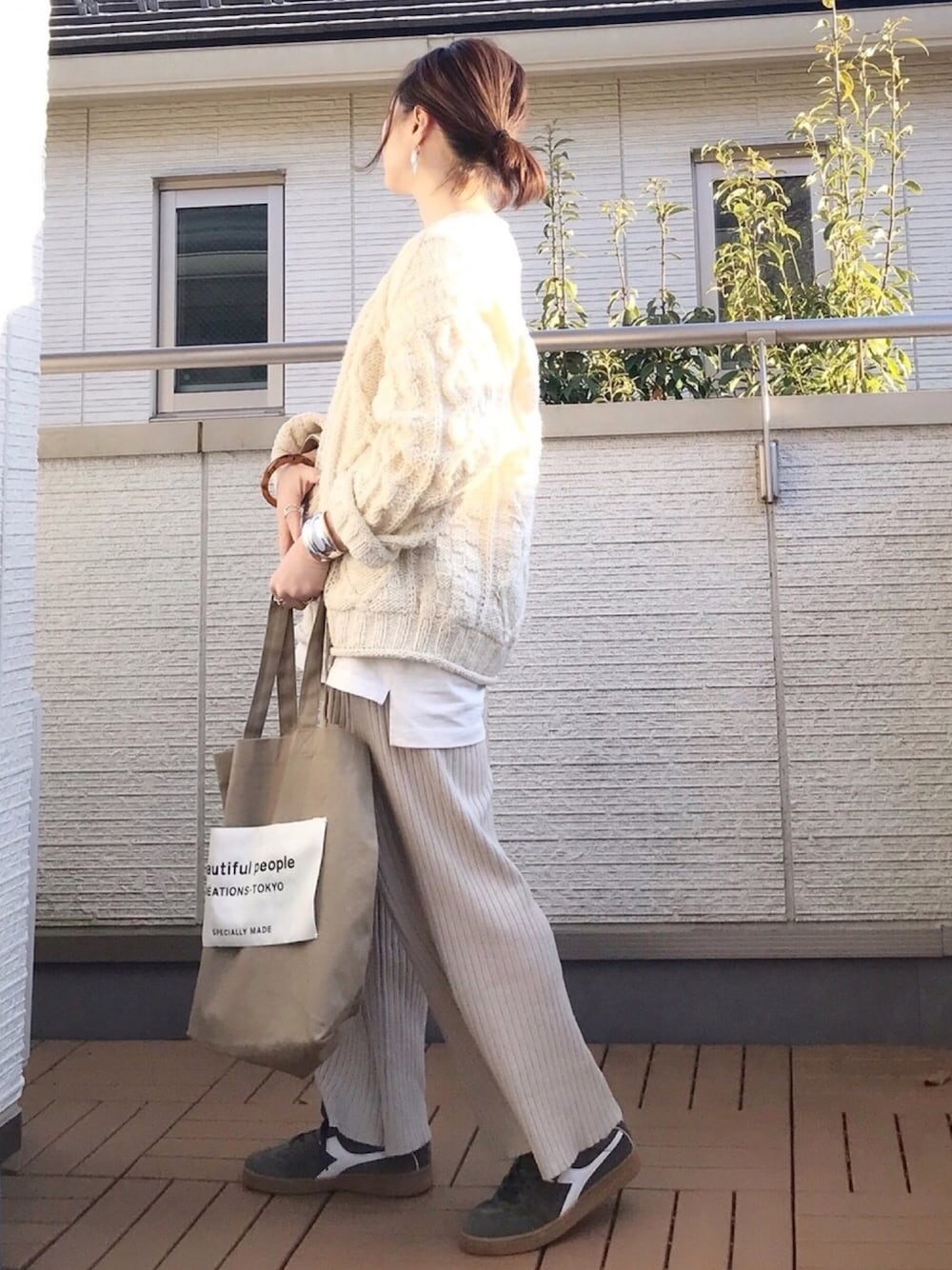 大人気のリブニットパンツ 股下と総丈の寸法と睨めっこして一番コンパクトだったこれに決定した😚 丈ピッタリ🙌 あとオリーブグリーンのスニーカーも🆕✨ DIADORAは初めてだけど凄く履きやすいです‼️ 足幅が細くてサイズ困りがちな人はこれオススメ😊💕