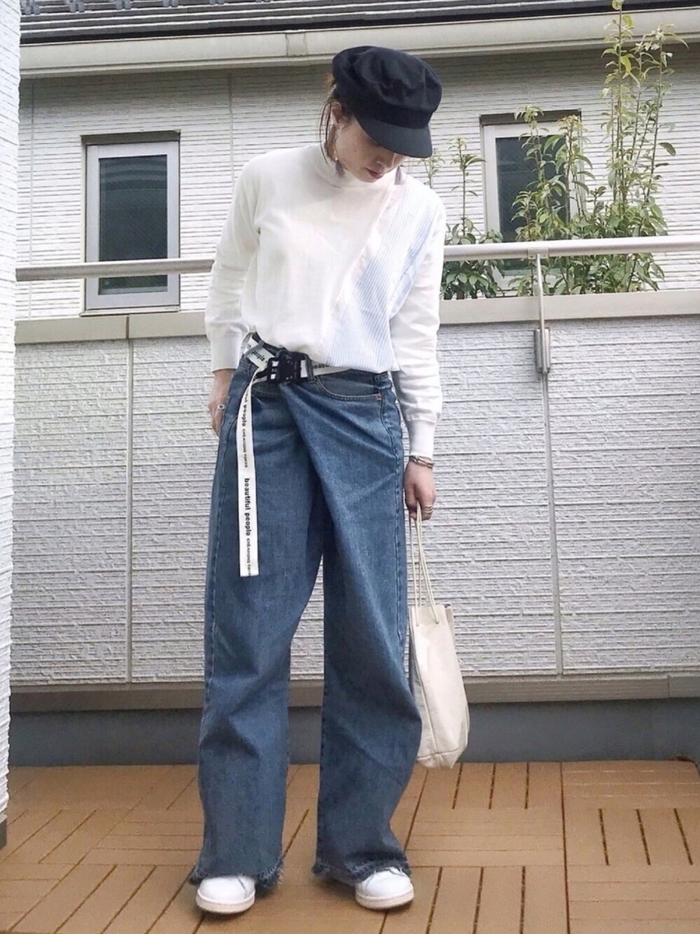 Kay-teeeのニット/セーター「S ストライプドッキングニット ニット」を使ったコーディネート