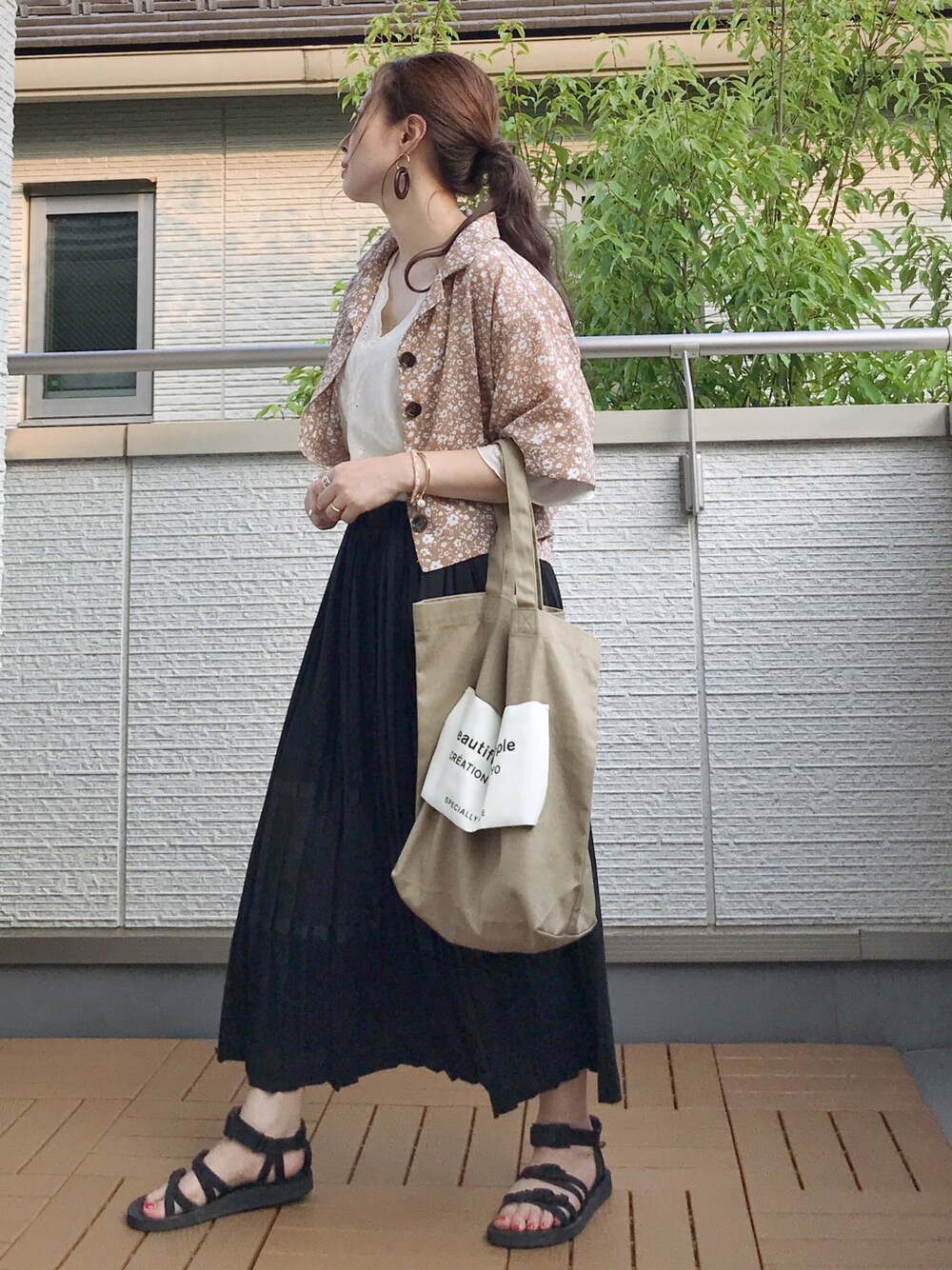 PairPairの花柄開襟シャツ👚🌸 ゆったりしたサイズ感にとろみ素材 プリントも甘過ぎない感じがお気に入り😊 インナーには同じくPairPairのスカラップブラウスを着てます 胸元の開き具合や袖の出方がレイヤードにちょうどよかった👍 Ne-netのプリーツスカート 異素材の切り替えが可愛い☺️❤️ ジャージー素材で肌触りもとても良いです◎