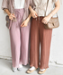 PairPairのプリーツパンツ 絶妙くすみパープル😍 ゆらゆら揺れる軽やかなプリーツの感じもめちゃ可愛いです👍 やや長め丈を私には珍しくヒールサンダルで合わせてます👡✨