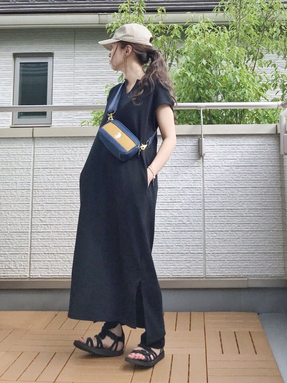Kay-teeeのワンピース「ポケット付きサーマル スキッパー スリットロングワンピース」を使ったコーディネート