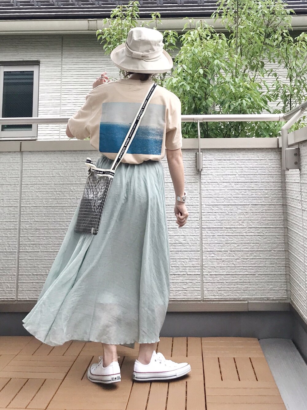 夏だ!Tシャツを着よう! サーフっぽいバックプリントが夏なTシャツに一目惚れ😍🍹✨ La-gemmeのリネンスカートはライトグリーンをセレクト✨ 大人っぽくて涼し気なくすみカラーがツボでした☝️ Polcadotのハットは軽くて柔らかいので暑い夏に長時間かぶっていてもストレスフリー◎ 嵩張らないのでお出掛けに気軽にに連れて行ける😊