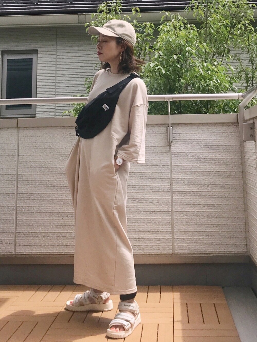 Chaco closetのスウェットワンピ ゆったりしてて長めの袖丈がめちゃ好み😊❤️ 着丈は長過ぎず小柄でもレイヤードが楽しめる絶妙丈👍
