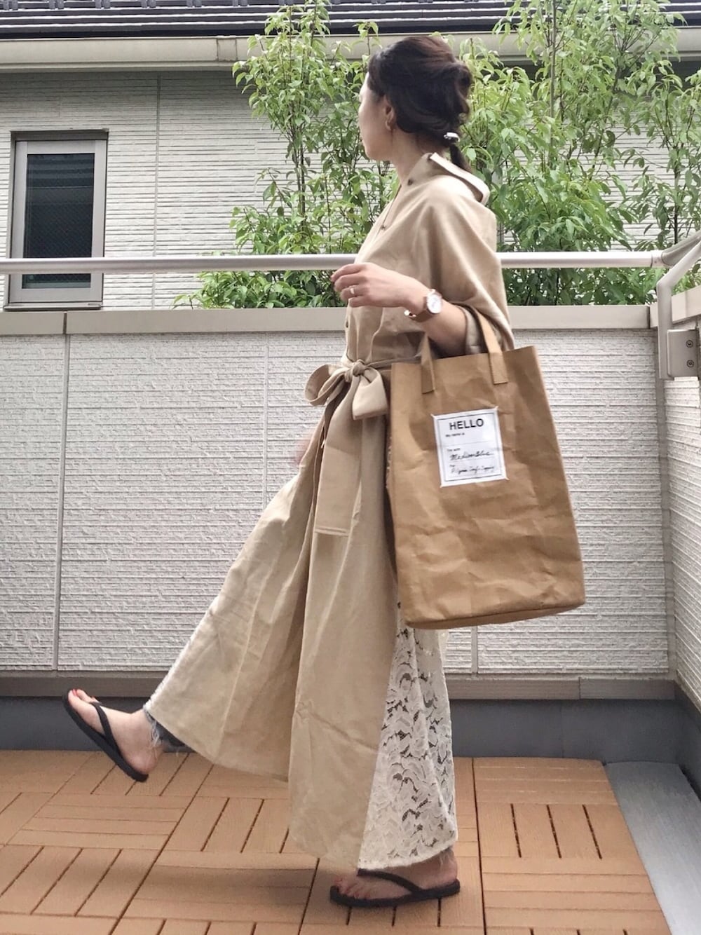 Kay-teeeのシャツワンピース「【Arumlily】レースドッキングシャツワンピース」を使ったコーディネート