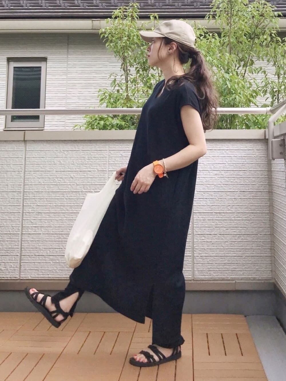 Chaco Closet のサーマルワンピ キーネックで首元スッキリ😊 モノトーンにネオンオレンジのSKAGENで差し色⌚️🍊