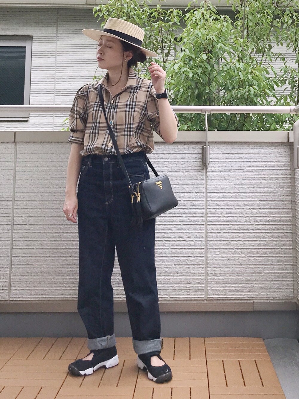Kay-teeeのシャツ/ブラウス「チェック柄&無地イロイロボタンシャツブラウス」を使ったコーディネート