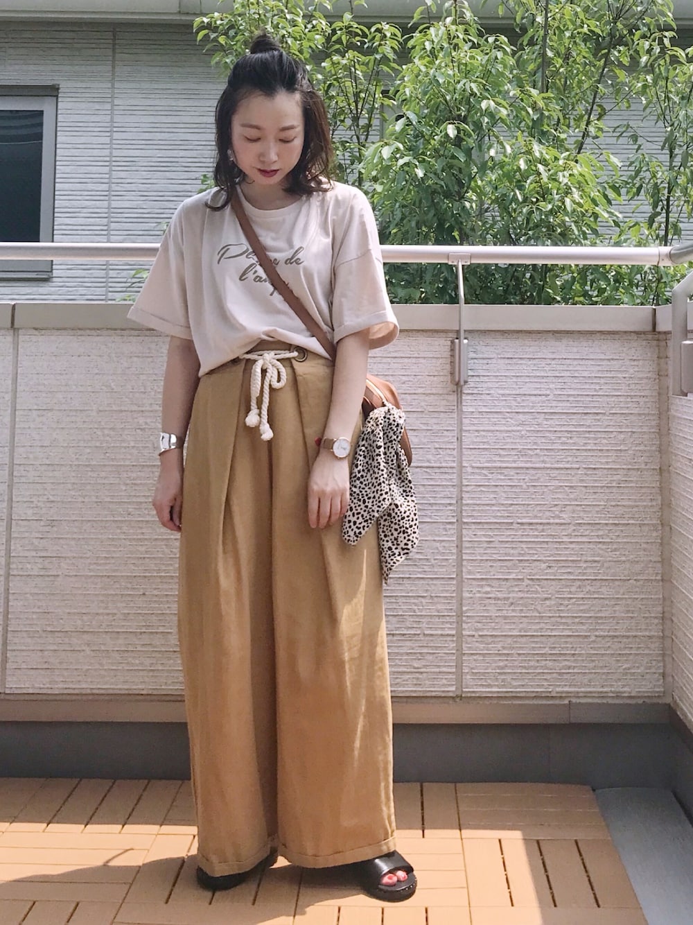 PairPair のロゴT なんとダルメシアン柄のスカーフ付き✨ この猛暑で首にに巻くのは流石に辛いのでバッグに付けた😚 別々でも着回せて長いスパン楽しめそう😊 足元はfitfropのサンダル 本革ボディにサイドのスタッズがちょっとモードな雰囲気で大人っぽい◎ しかも楽ちんな履き心地🙌