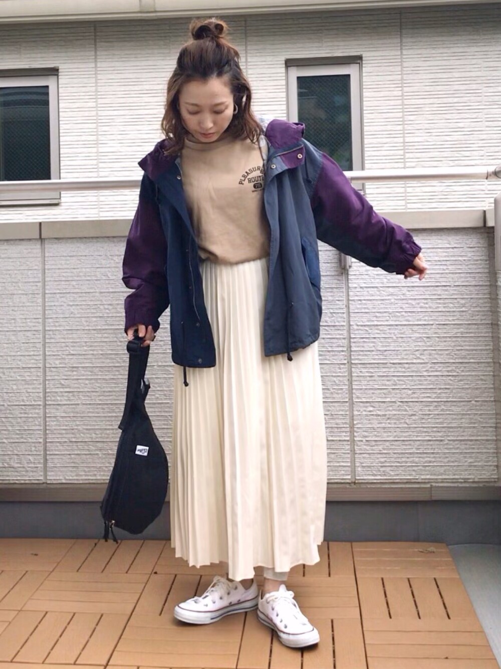 アウトドア×プリーツスカート 😊✨