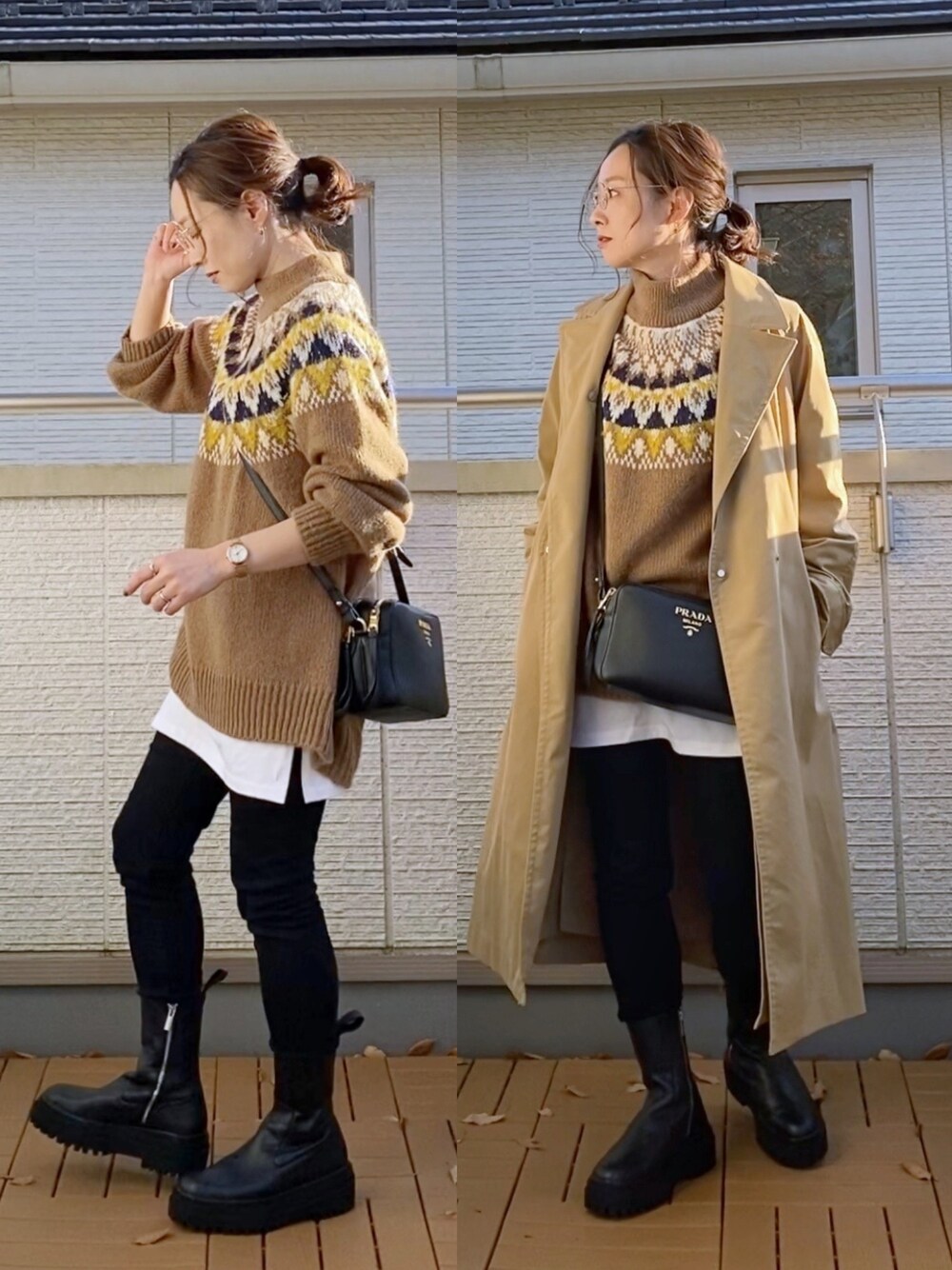 フェアアイル柄ニットは辛口に合わせるのが好み✨ Fossil のリストウォッチはやや小振りな文字盤にメッシュベルトがとても上品😊✨