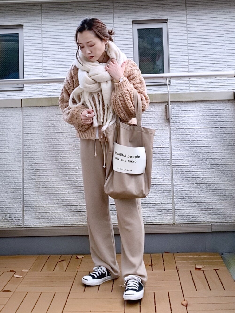 ざっくりケーブルニットカーデにマフラーぐるぐる😊✨