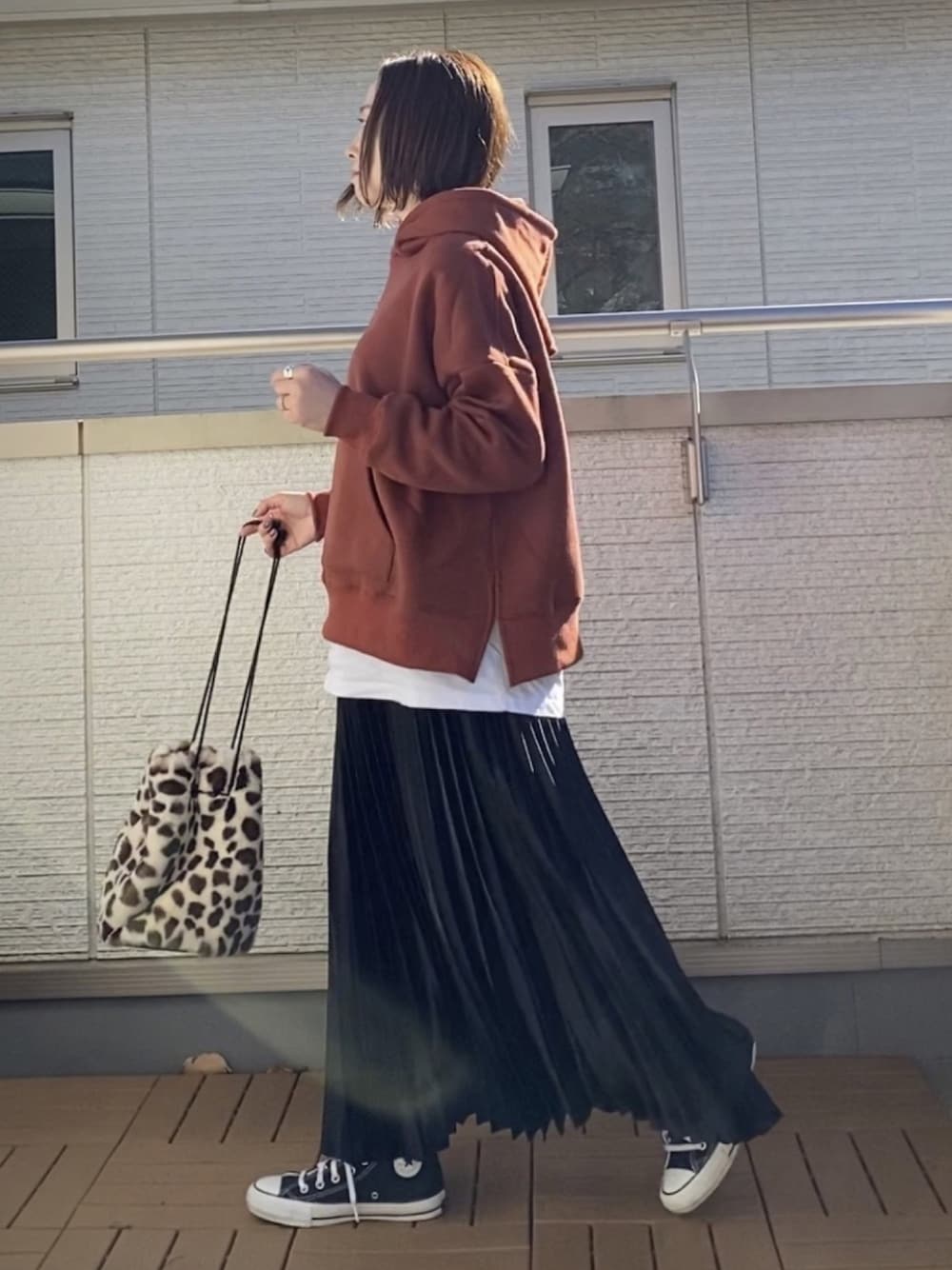 サテンプリーツスカート ✨ スウェットコーデがちょっと大人っぽくなる😊❤️