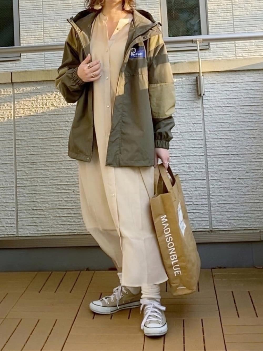 シアーな質感のシャツワンピにマウンテンパーカーでカジュアルに😊✨