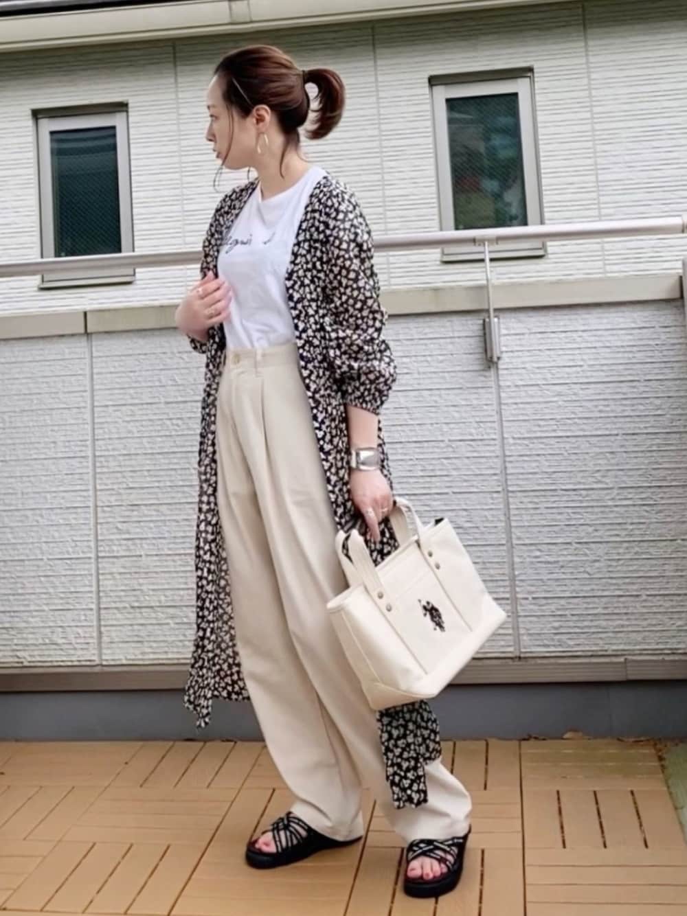 Kay-teeeのワンピース「アムンゼン小花プリント前ボタンワンピース」を使ったコーディネート