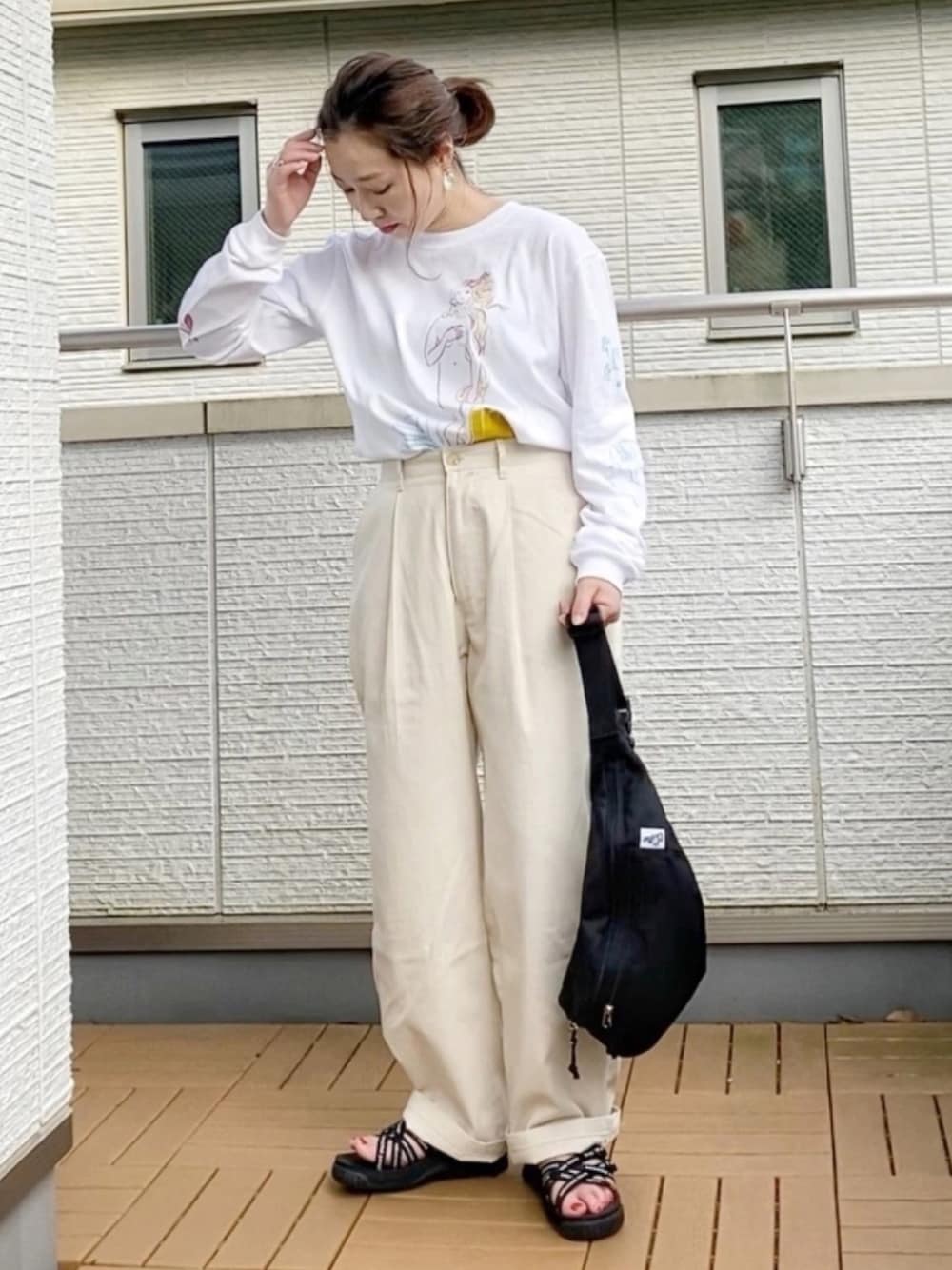 Kay-teeeのTシャツ/カットソー「[ L&HARMONY/エルアンドハーモニー ] 苦虫ツヨシ×L&HARMONY ヴィーナスの誕生 ロングTシャツ」を使ったコーディネート