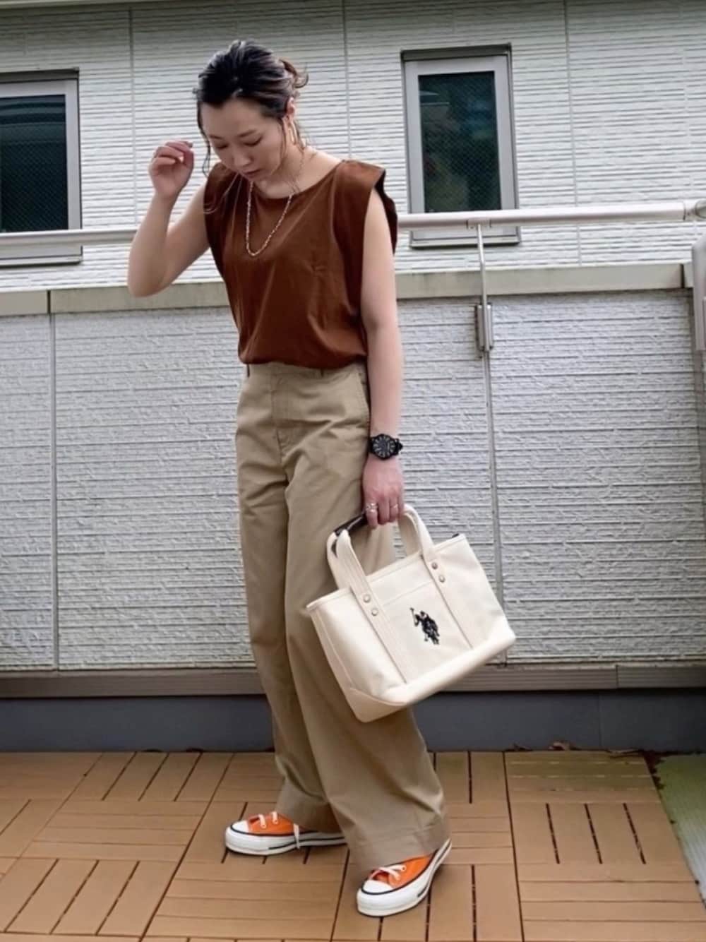 このノースリめちゃいい雰囲気😍 お気に入りのオレンジCONVERSEとも相性良いし気に入った🙌✨