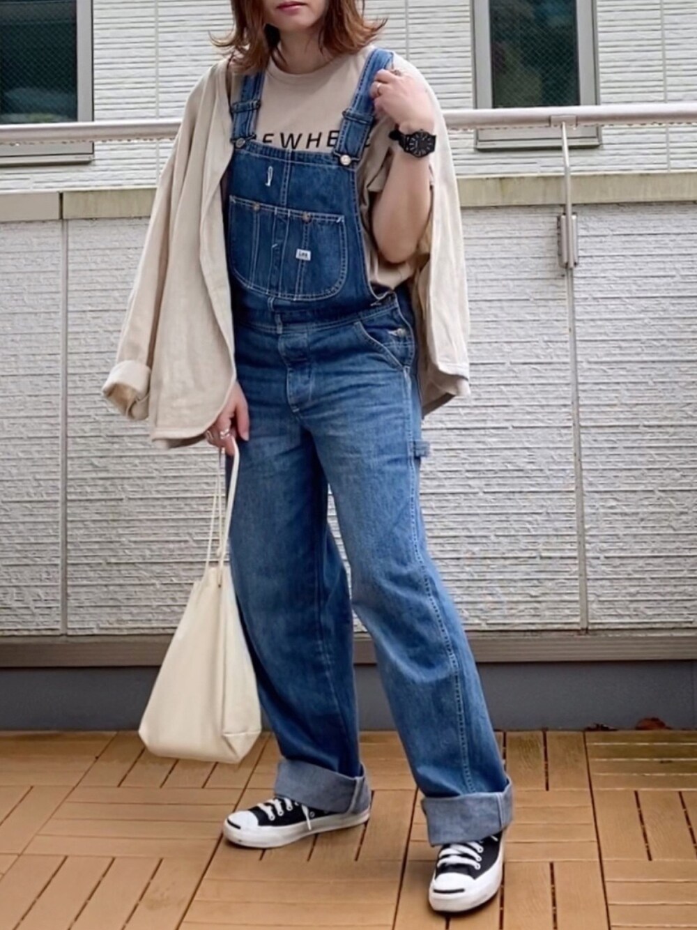 このサロペット着心地良過ぎて大好き🥰 胸のポケットにスマホ入れて家事の最中に音楽聴けるのが最高🙌✨