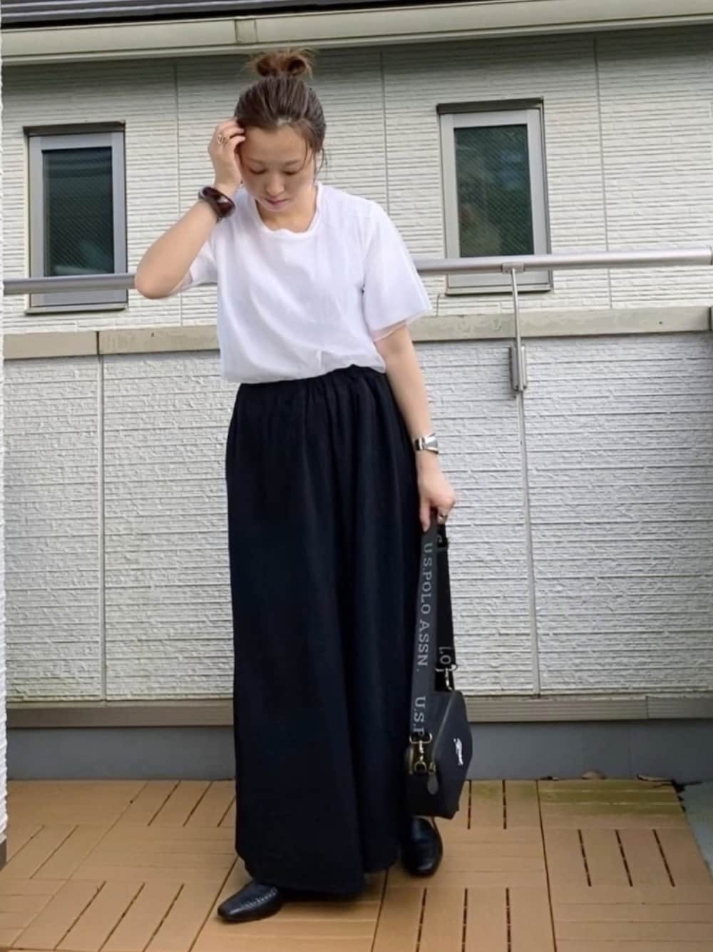 モノトーンでシンプルに🍙 チュールトップで少し女子な要素をプラス😊❤️ Riberryのリネンライクワイドフレアーパンツ✨ 楽ちんで涼しい👍 シンプルで大人っぽいベーシック服は着回し力も◎ 本日Riberryの1000円クーポンDAYです💁♀️✨