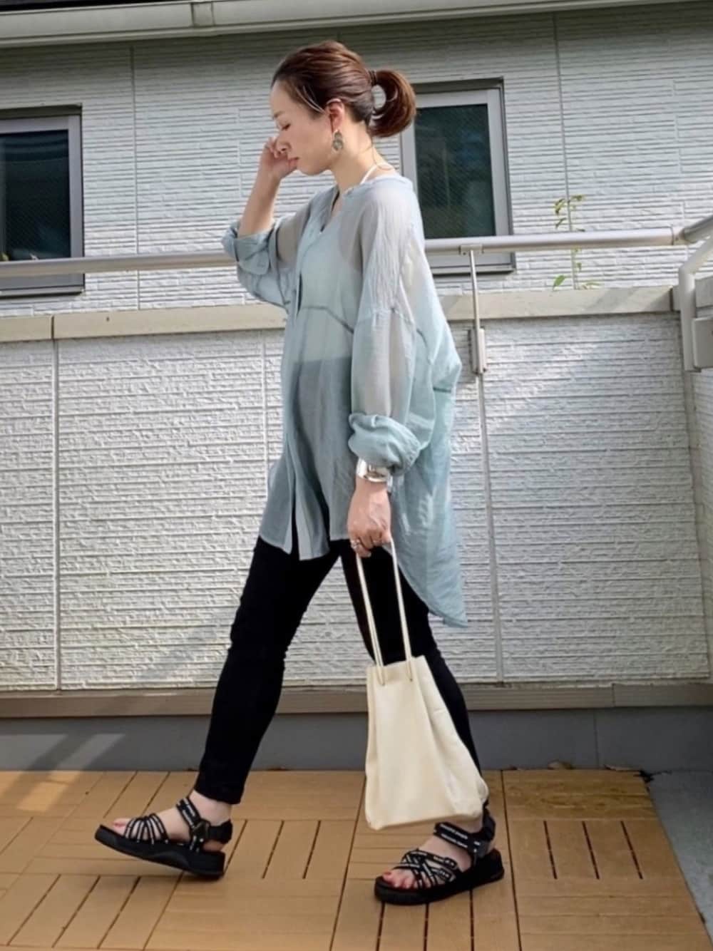 Kay-teeeのシャツ/ブラウス「【Holiday】バンドカラーシアーシャツ」を使ったコーディネート